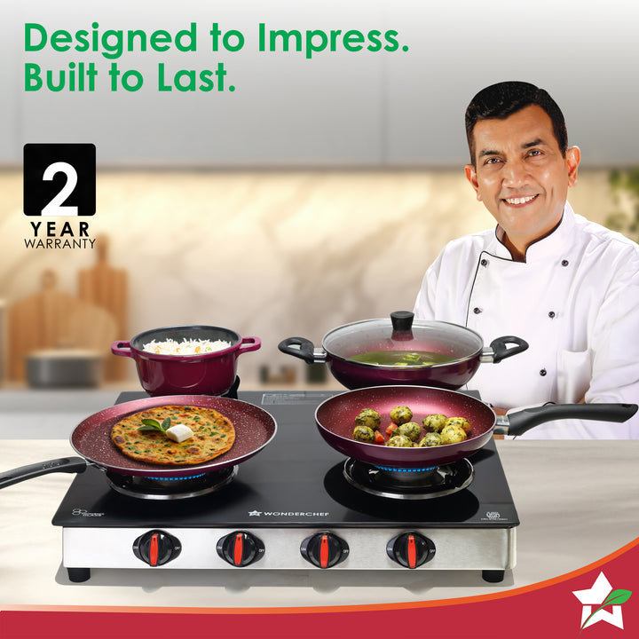 - 4 BURNERS: 2 medium, 2 small cater to different cooking needs.