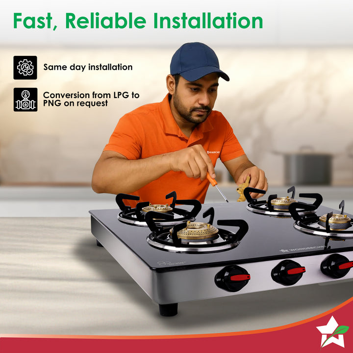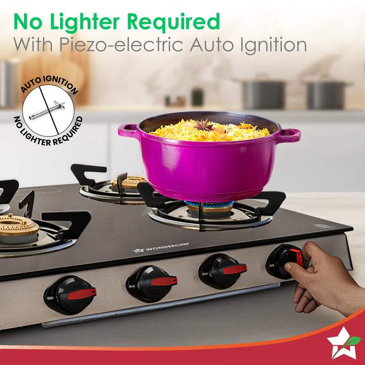 Galaxy Auto-Ignition 4 Brass Burner Cooktop, LPG Gas Stove for Kitc...