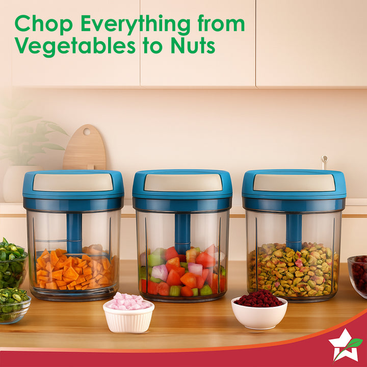 With just a few pulls, Wonderchef Pulse String Chopper chops fruits, vegetables, nuts, and garlic! Perfect for quick meal preparation everyday!