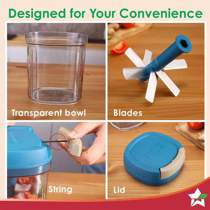Pulse Vegetable String Chopper | Vegetable Cutter | 900ml | 6 Sharp Stainless-steel Blades for Precise Cutting | Transparent Bowl | Anti-slip Design | 1-Year Warranty
