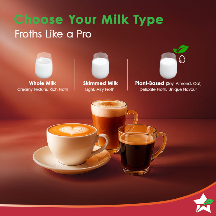 - AUTOMATIC FROTHING: Fill the porta filter with finely ground coffee powder, fix it and switch the maker on to get a great espresso shot. In case you have selected cappuccino or latte, the machine will automatically extract milk from the container, froth it appropriately and add it to the espresso shot to give you the perfect coffee.