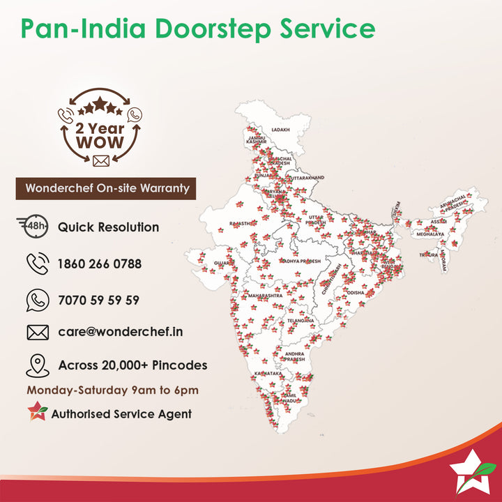 - 2 YEAR WARRANTY: Peace-of-mind with reliable Wonderchef warranty with the best after-sales service in over 22,000 pin codes across India.