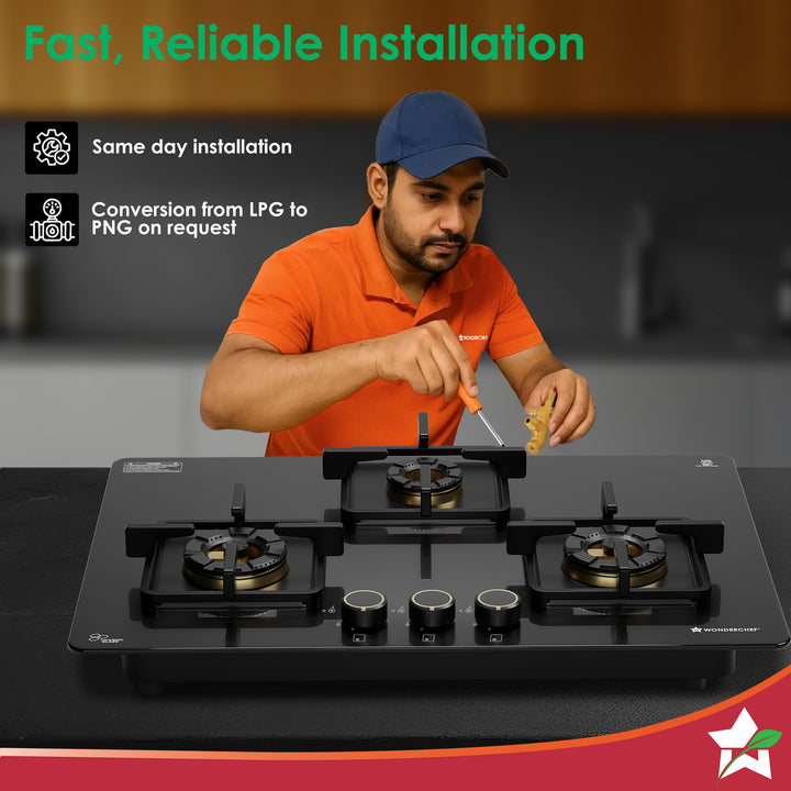 - WARRANTY: 5-year warranty on burners, 7-year warranty on glass. T&C apply.