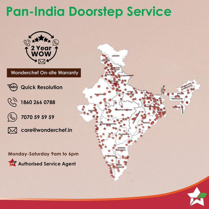 - 2-year On-site Warranty: Peace of mind with a reliable Wonderchef warranty with the best after-sales service provided at your home in over 20,000 pin codes across India.