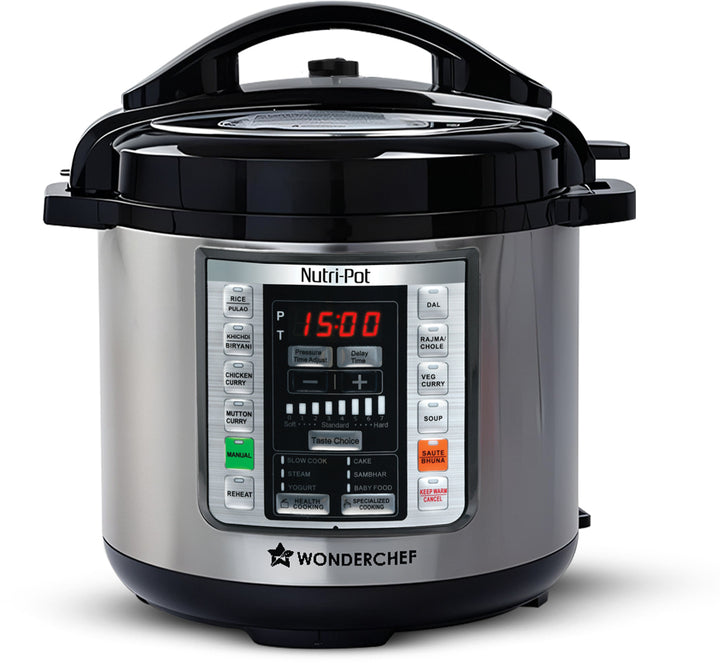 The main differences between a traditional pressure cooker and a Nutri-Pot is that of usability and technology. Cooking made simple with 18 pre-set functions: from plain rice to pulav, Khichdi or even a Biryani is possible in Nutri-Pot. It acts as a steamer, slow cooker and can also sauté / bhuna the ingredients.