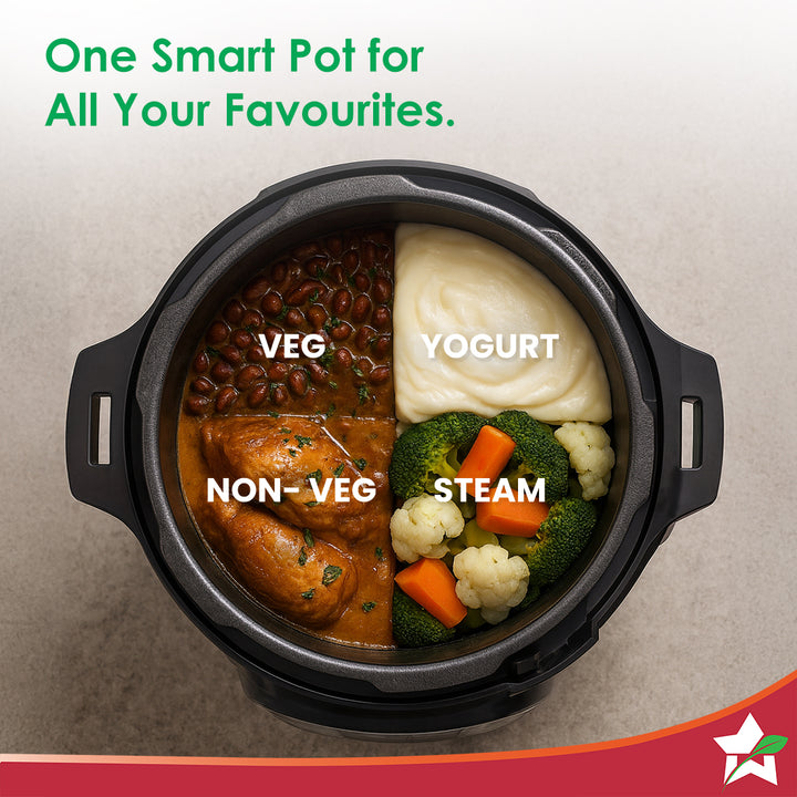 It is a combination of 7 different appliances put all-in-one in your kitchen. Combining the power and attributes of 7 kitchen appliances like Pressure Cooker, Steamer, Yogurt Maker, Sauté, Rice Cooker, Warmer and Slow Cooker into one, this cooking pot enables you to perform most of your cooking functions. On top of it, its automatic functioning doesn't allow to worry much about the cooking. You can simply put it on and relax and the cooking pot will prepare your meal with perfection. Nutri-Pot is perfectly safe to use with controlled pressure and superior quality of construction. Make variety of Indian & even Western recipes in the Nutri-Pot.