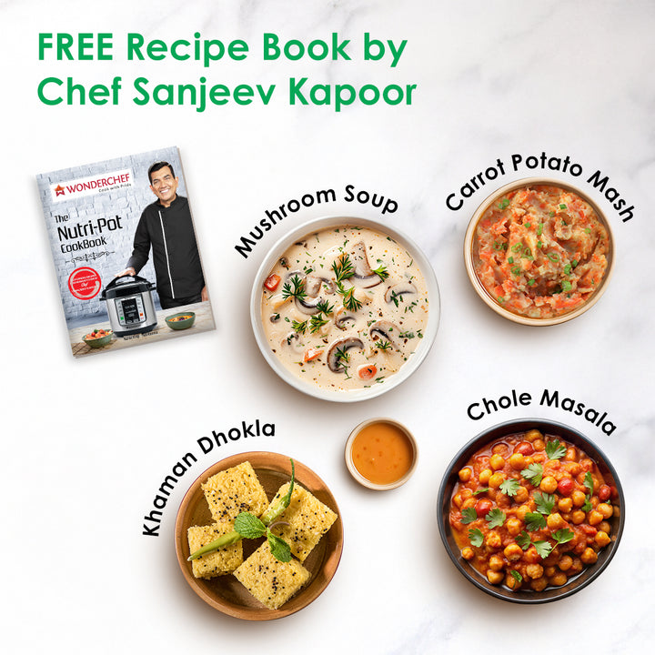 It is perfect for a family of 5 or more. Nutri-Pot makes your everyday cooking extremely convenient. Anyone can cook with Nutri-Pot and get perfect results every time. Whether you are a pro or a beginner in the world of cooking, Nutri-Pot with its one touch cooking is your perfect kitchen partner. Put the ingredients in, select a specific cooking function and you can leave the kitchen, let the Nutri-Pot do the rest while you come back to evenly cooked flavor packed food. Chef Sanjeev Kapoor's specially curated recipe book comes along with your Nutri-Pot.